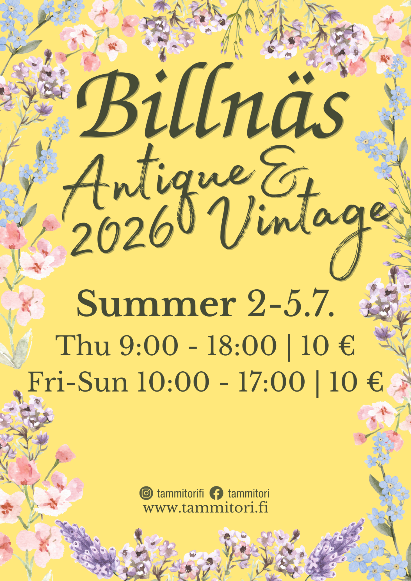 Billnäsin antiikki ja vintage tapahtumat vuodelle 2026 on nyt julkaistu. Mukana uusi tapahtuma keväälle 2026, 25-26.4. nyt ensimmäistä kertaa järjestettävä Billnäs Antique & Vintage Spring tapahtuma. Kesän suurin ja upein antiikki ja vintage tapahtuma Billnäsin Antiikkipäivät & Antiikkitori perinteisesti heinäkuussa 2-5.7. Syyskuun lopussa järjestetään Billnäs Antique & Vintage Autumn (aikaisemmin October fair) tapahtuma joka on myös saanut hyvän vastaanoton ja kerännyt vuosi vuodelta paljon uusia kävijöitä.